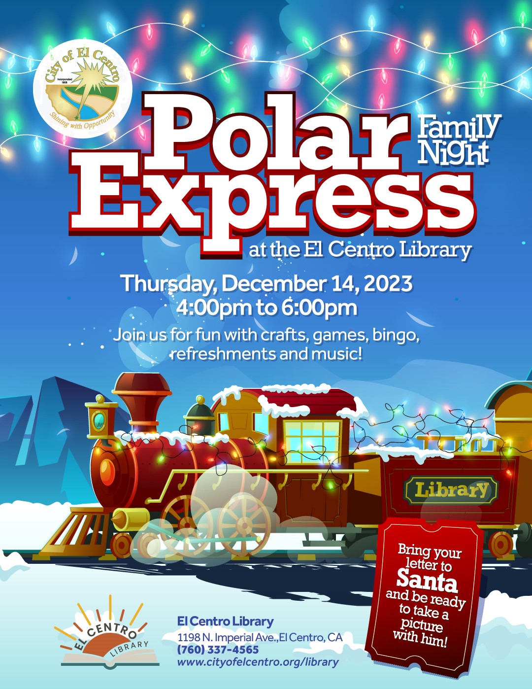 Jump on the Polar Express at the El Centro Library Take a trip to the North Pole aboard the Polar Express at the El Centro Library from 4 p.m. to …