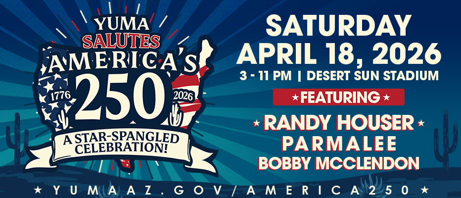 The City of Yuma is inviting the community to attend Yuma Salutes America's 250: A Star-Spangled Celebration happening in April. The event is taking place Saturday, April 18, 2026, at Desert Sun Stadium from 3 p.m. to 11 p.m., and it is to honor America's 250th Birthday while taking advantage of the spring weather. According …